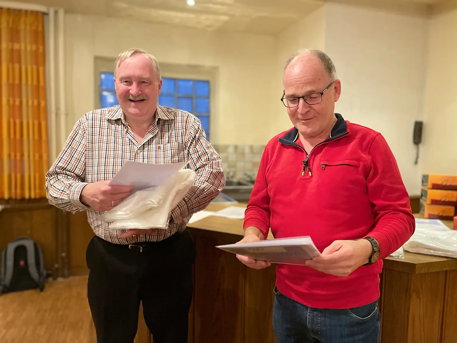 Hans Peter Haak (links) übernimmt den Posten als 1. Vorsitzender von Michael Hölzgen (rechts), der nicht mehr zur Wahl stand und stattdessen den Posten des Schriftführers übernahm, den Hans Peter Haak bisher begleitete.